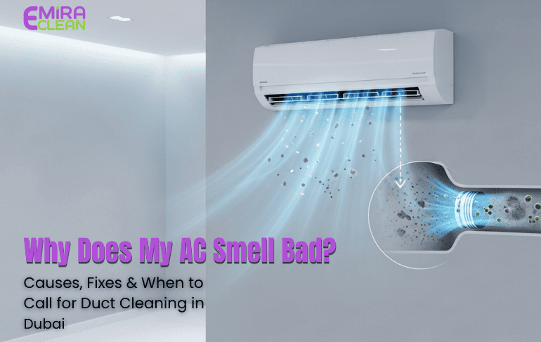This is one of the most common complaints from Dubai residents, and it makes sense. In a city where the AC runs almost every single day of the year, the system works hard. Dust, moisture, and heat create the perfect conditions for things to build up inside your ducts — and whatever is in there gets blown straight into your home every time you switch on the AC.